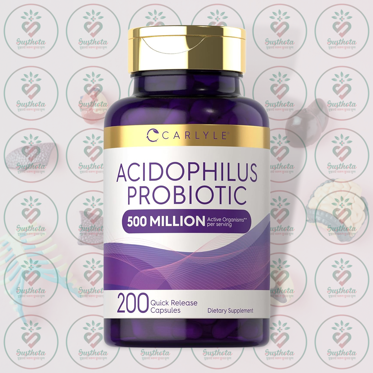 Carlyle Acidophilus Probiotic - 500 Million CFU - 200 Quick Release Capsules is now available in Bangladesh at Susthota. This premium probiotic supplement is formulated with Lactobacillus acidophilus to support digestive health and immune function naturally. It contains 500 million active organisms per serving for optimal gut health support. With 200 quick release capsules providing 100 servings, it offers exceptional value and convenience for daily supplementation. Carlyle Acidophilus Probiotic is now available at the lowest price in our shop, ensuring accessibility for health-conscious individuals. Order authentic Acidophilus Probiotic from our shop today at the cheapest price in BD. Call our helpline to know the latest price and availability of the original Carlyle Acidophilus Probiotic in Bangladesh. Experience the remarkable benefits of optimal digestive wellness, now available in BD.