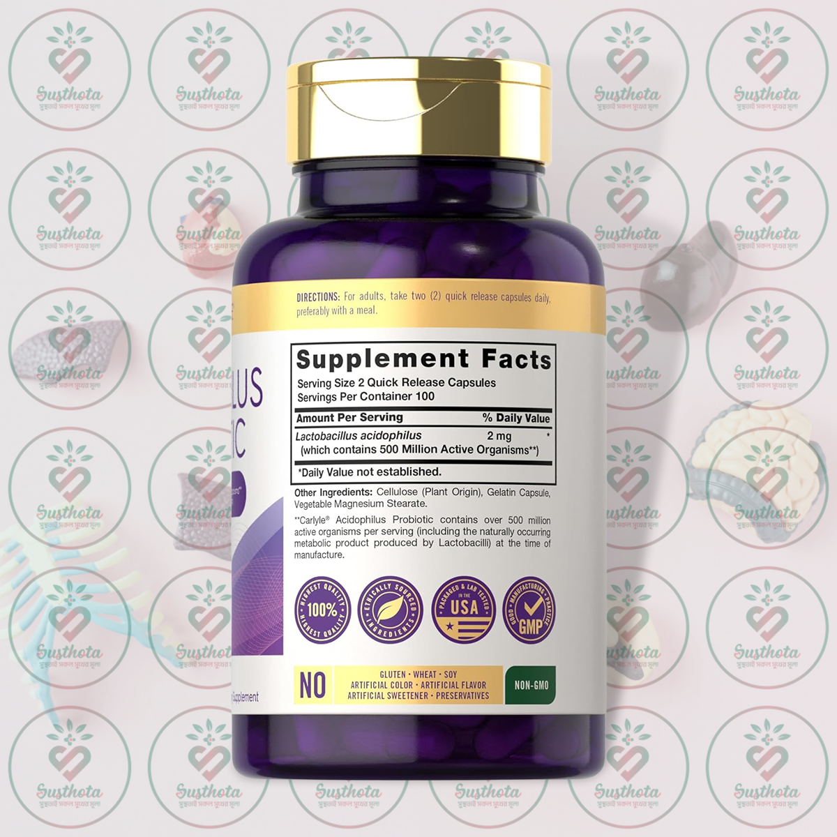 Carlyle Acidophilus Probiotic – 500 Million CFU – 200 Quick Release Capsules in Bangladesh
