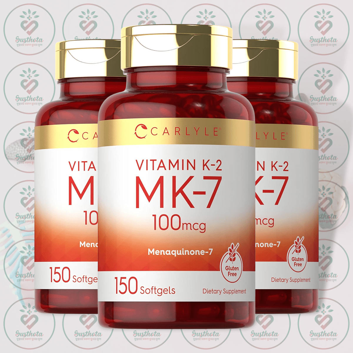 Carlyle Vitamin K-2 MK-7 - 100 mcg - 150 Softgels is now available in Bangladesh at Susthota. This premium dietary supplement is formulated with bioactive Menaquinone-7 to support bone health and cardiovascular wellness. It contains plant-based Vitamin K2 MK-7 for optimal calcium metabolism and arterial protection. With 150 quick release softgels, it offers convenient once-daily dosing for sustained health benefits. Carlyle Vitamin K-2 MK-7 is now available at the lowest price in our shop, ensuring accessibility for health-conscious individuals. Order authentic Vitamin K-2 MK-7 from our shop today at the cheapest price in BD. Call our helpline to know the latest price and availability of the original Carlyle Vitamin K-2 MK-7 in Bangladesh. Experience superior bone and heart health support, now available in BD.
