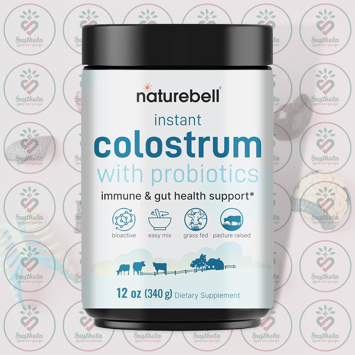 NatureBell Instant Colostrum with Probiotics - 1000 mg - 340g Powder is now available in Bangladesh at Susthota. This premium bioactive supplement combines grass-fed bovine colostrum with 1 billion CFU probiotics for comprehensive immune and digestive health support. It contains ten different probiotic strains and high-quality colostrum in an easy-to-mix powder format. With 340 servings per container, it offers exceptional value and convenience for daily supplementation. NatureBell Instant Colostrum with Probiotics is now available at the lowest price in our shop, ensuring accessibility for health-conscious individuals. Order authentic Instant Colostrum with Probiotics from our shop today at the cheapest price in BD. Call our helpline to know the latest price and availability of the original NatureBell Instant Colostrum with Probiotics in Bangladesh. Experience the powerful benefits of nature's first superfood with beneficial probiotics, now available in BD.