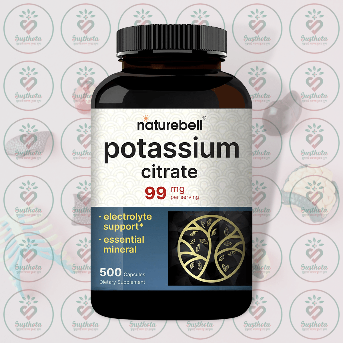 NatureBell Potassium Citrate - 99 mg - 500 Capsules is now available in Bangladesh at Susthota. This premium supplement supports electrolyte balance, muscle health, and overall wellness. It contains 99 mg of potassium citrate per serving, offering a reliable source of this essential mineral. NatureBell Potassium Citrate is now available at the lowest price in our shop, ensuring affordability and quality. Order authentic NatureBell Potassium Citrate from our shop today at the cheapest price in BD. Call our helpline to know the latest price and availability of the original NatureBell Potassium Citrate in Bangladesh. Enhance your health and vitality with this trusted supplement, now available in BD.