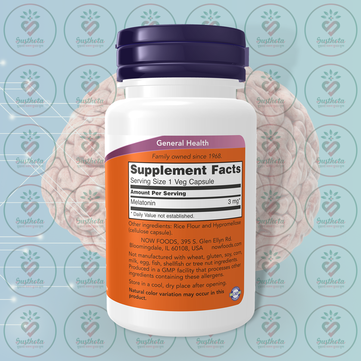 NOW Melatonin - 3 mg - 60 Veg Capsules is now available in Bangladesh at Susthota. This premium sleep support supplement is formulated to promote healthy sleep cycles and provide powerful antioxidant protection. It contains pure melatonin for natural sleep regulation without dependency risks. With 60 vegetarian capsules providing two months of consistent use, it offers exceptional value and convenience. NOW Melatonin is now available at the lowest price in our shop, ensuring accessibility for those seeking quality sleep support. Order authentic Melatonin from our shop today at the cheapest price in BD. Call our helpline to know the latest price and availability of the original NOW Melatonin in Bangladesh. Experience the natural power of restful sleep with trusted quality, now available in BD.