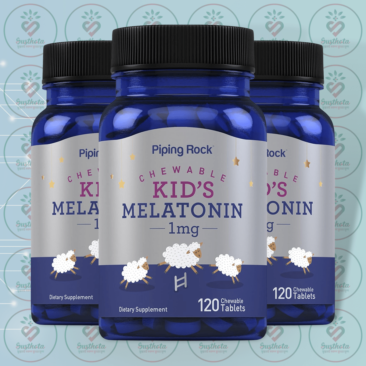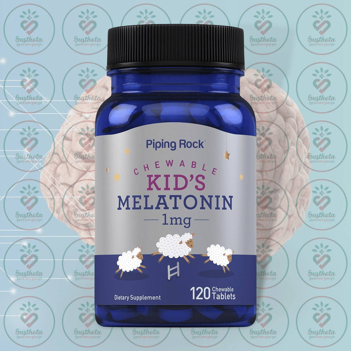 Piping Rock Chewable Kid's Melatonin - 1 mg - 120 Chewable Tablets is now available in Bangladesh at Susthota. This gentle, drug-free sleep supplement is formulated specifically for children aged 4 years and older to support healthy sleep routines. It contains 1 mg of melatonin in a delicious fruit-flavored chewable tablet that kids love. With 120 tablets per bottle, it offers excellent value for occasional sleep support needs. Piping Rock Chewable Kid's Melatonin is now available at the lowest price in our shop, making quality sleep support accessible to all families. Buy authentic Piping Rock Kid's Melatonin from Susthota today at the cheapest price in BD. The non-GMO, gluten-free, and vegetarian formula is laboratory tested for quality and safety. Call our helpline to know the latest price and availability of the original Piping Rock Chewable Kid's Melatonin in Bangladesh. Give your child the gift of restful sleep with this trusted supplement, now available in BD.