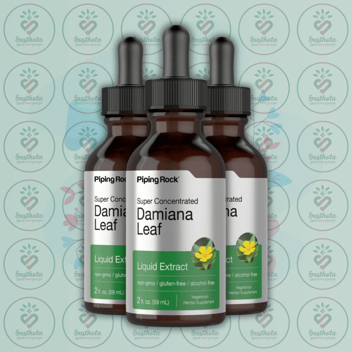 Piping Rock Damiana Leaf Liquid Extract is now available in Bangladesh at Susthota. This alcohol-free herbal supplement is designed to support overall wellness with its potent Damiana Leaf extract. Each 59 mL dropper bottle provides a super concentrated formula, ensuring maximum benefits without any sugar or alcohol. Piping Rock's Damiana Leaf is now available at the lowest price in Bangladesh, making it an affordable choice for those seeking natural health solutions. Order original Piping Rock Damiana Leaf Liquid Extract from our shop today and experience the benefits of this rare herb. Call our helpline to know more about the latest price and availability of Piping Rock Damiana Leaf Liquid Extract in Bangladesh.