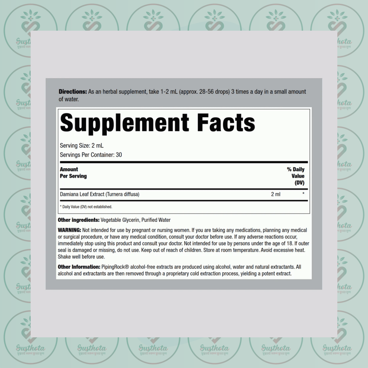 Piping Rock Damiana Leaf Liquid Extract – 59 mL Dropper Bottle in Bangladesh