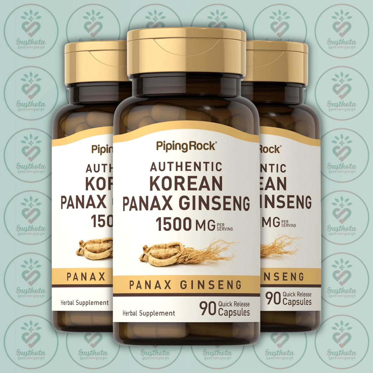 Piping Rock Korean Panax Ginseng is now available in Bangladesh at Susthota. This herbal supplement provides 1500 mg of standardized ginseng extract, promoting energy, endurance and immune support. Customers can get the Piping Rock Korean Panax Ginseng at the lowest price in BD, ensuring quality and affordability. Order authentic Piping Rock Korean Ginseng from our shop today to experience its benefits. Call our helpline to know the latest price and availability of Piping Rock Korean Panax Ginseng in Bangladesh.