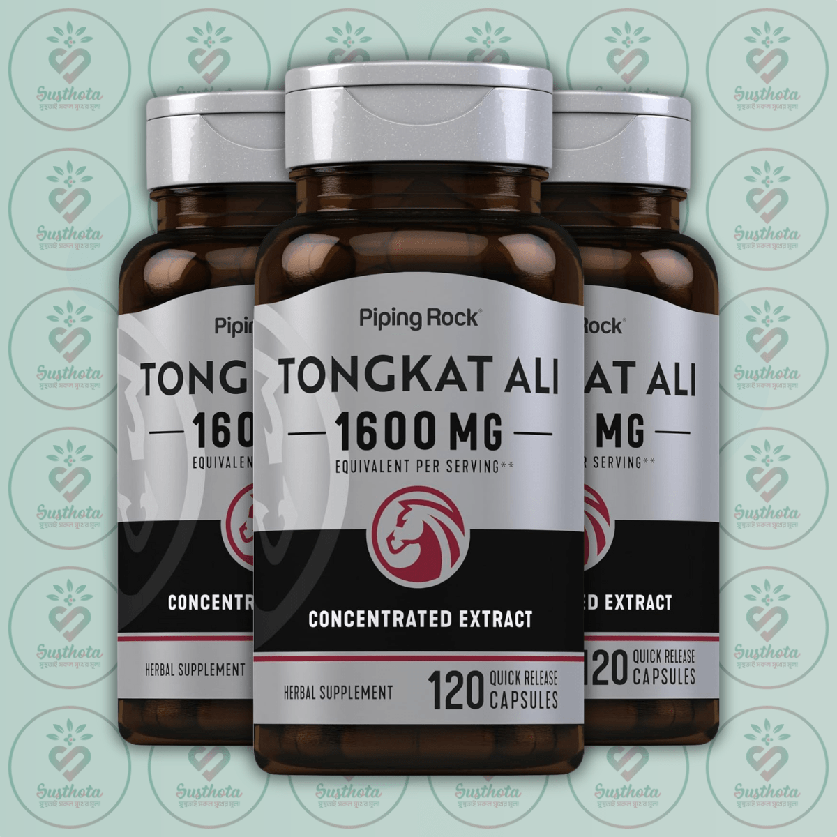Piping Rock Tongkat Ali Long Jack capsules for Men is now available in Bangladesh at Susthota. This powerful herbal supplement supports vitality, fertility, endurance, and overall male sexual & physical wellness with 1600 mg per serving. Piping Rock’s Tongkat Ali is non-GMO and gluten-free, ensuring top quality for your health. Shop original Piping Rock Tongkat Ali Long Jack now at the lowest price in Bangladesh. Call our helpline to know the latest price and availability of Piping Rock Tongkat Ali Long Jack in BD.