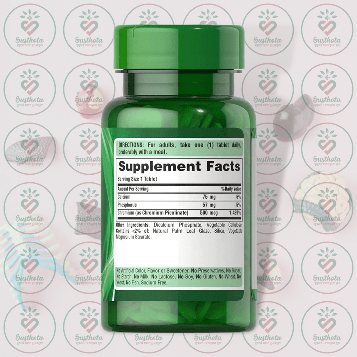 Puritan’s Pride Chromium Picolinate – 500 mcg – 100 Coated Tablets in Bangladesh
