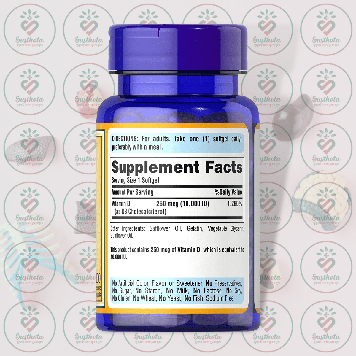 Puritan’s Pride Sunvite Mega-Potency Vitamin D3 – 250 mcg (10,000 IU) – 100 Rapid Release Softgels in Bangladesh